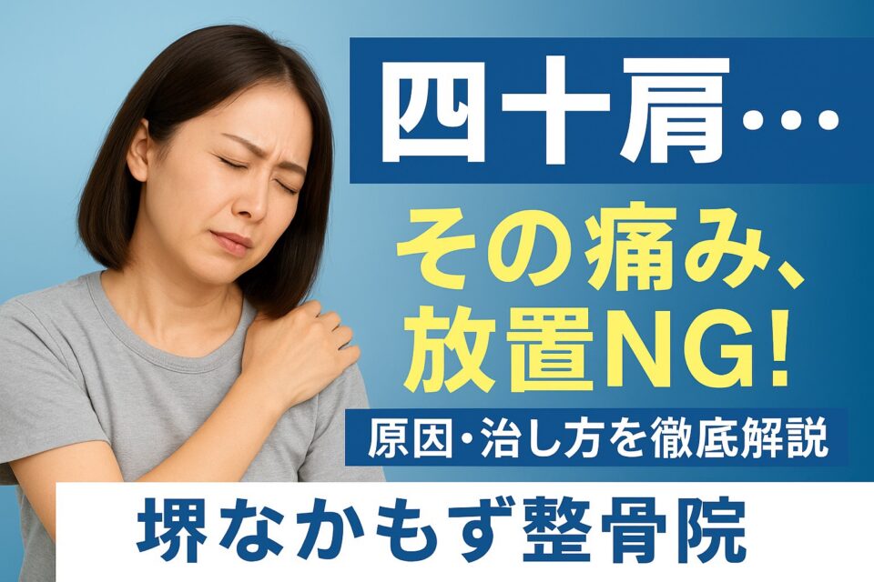 「腕が上がらない」「夜に肩がズキッと痛む」「服を着るのがつらい…」 40〜50代に多い 四十肩・五十肩 は、放っておくと半年〜1年以上続くこともあるつらい症状です。 堺なかもず整骨院にも、 「突然肩が痛くなった」 「痛みが長引いて家事や仕事に支障が出ている」 という方が多く来られます。 ...